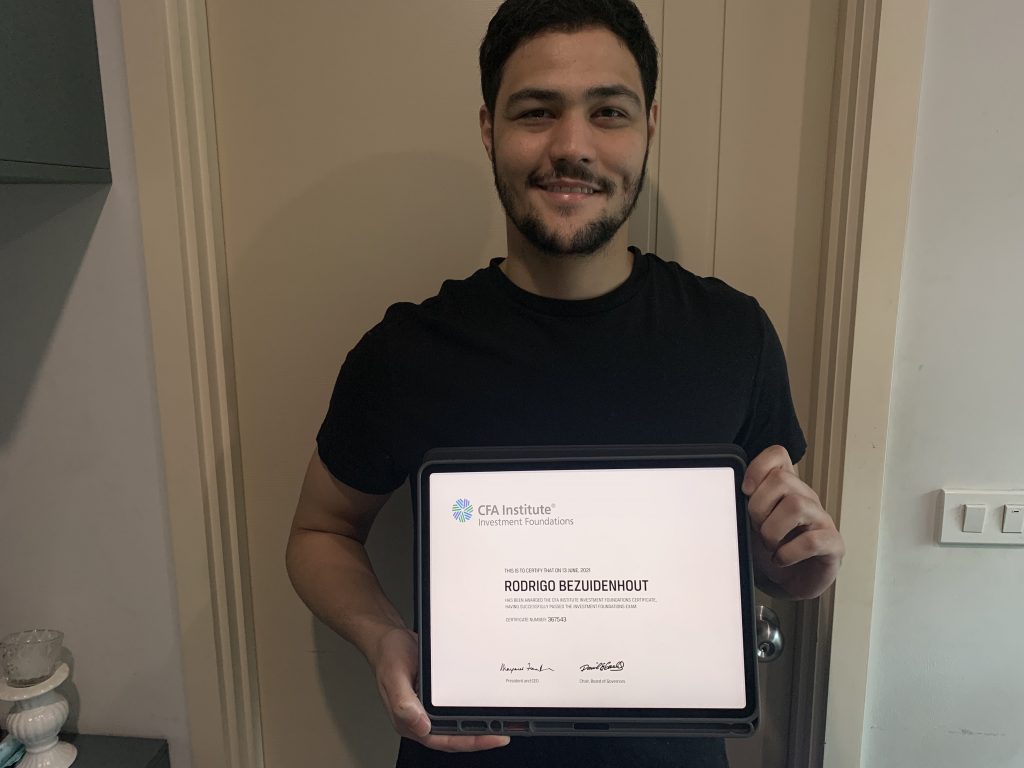 Finance and banking students taking FIN 321 Financial Markets and Institutions during term three 2020 were awarded the CFA Institute Investment Foundations certificate after having successfully passed the Investment Foundations exam. The online CFA Institute Investment Foundations Program covers the essentials of finance, ethics, and investment roles, and provides a clear understanding of the global investment industry. Students had to complete seven modules over the course of two terms in order to earn the certificate.