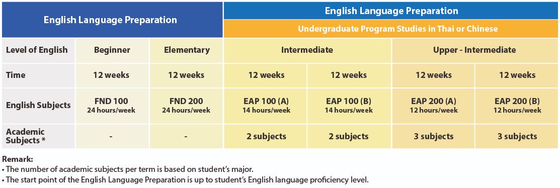 She will study English 12 hours a week, and she will take 2 major courses taught in Thai.