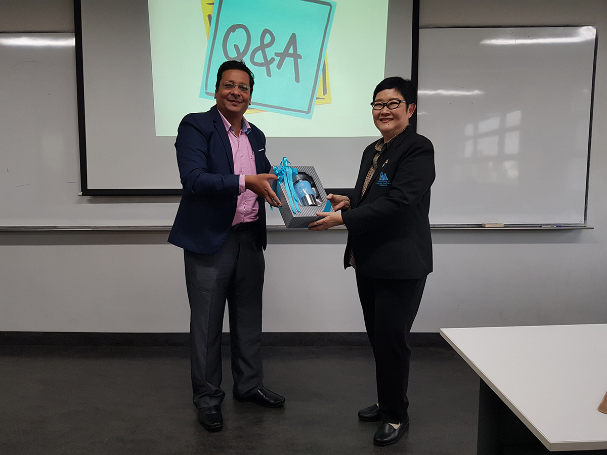 Mrs. Chantana Suebsin CIA, Chairperson of the prestigious Institute of Internal Auditors of Thailand, delivered a special talk to our Accountancy students. She enlightened the students on the role of internal audit as a key assurance and consulting activity. She also educated the students on the internal audit process and careers in this field.