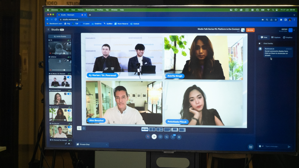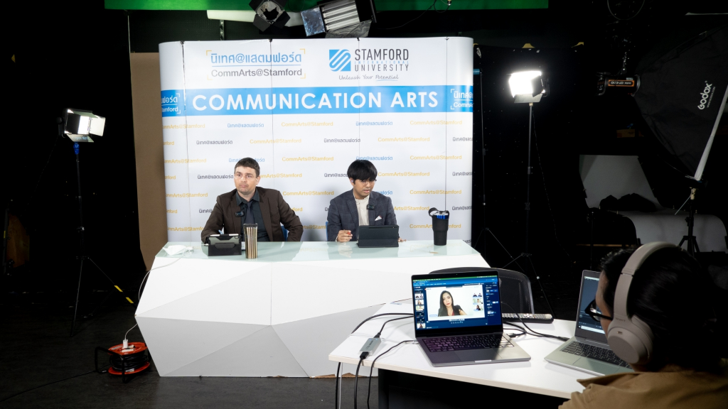 On Friday, January 27, 2023, the Communication Arts Program organized the live steaming event on Facebook—“The 2nd International Media Forum” under the topic: “Brand Communication in the Digital Era” with three panelists comprising of Ms. Amrita Singh, Director of DMI Event, Nepal, Ms. Petchlada Pilouk, Senior Account Executive of ShareInvestor, Thailand, and Mr. Alex Beuchel from Germany, Director of Jump Communications which is located in Thailand. Event moderators are two lecturers from the Communication Arts Program, Dr. Peerawat Tan-intaraarj, and A. Marian Ehret. The number of participants, included Stamford lecturers, Stamford current students, and people who were interested in the topic, joining this online event is 55.